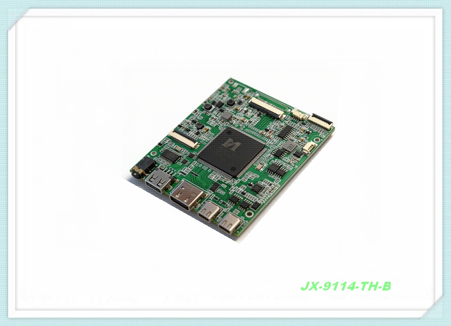 JX-9114-TH-B_EDP信号4K驱动板 4K便携显示驱动方案HDMI+USB+TYPEC一线通手机镜像投屏 该产品定位高端的 EDP 4K@60Hz高清MONITOR方案,采用MSTAR 单芯片电视处理IC,具有画质好,功能多,接口丰富,系统成熟等特点,支持手机无线投屏,有线推送,支持到2K/4K EDP屏(3840*2160),主要针对21”及以下尺寸监控/便携式产品设计。 多画面显示,同一个屏,最多同时显示3路视频信号。 输入信号: HDMI(1.4 )X1,手机无线投屏, Type-Cx1 ,USBx1(有线推送)(使用Type-C做输入源时;可扩展用于鼠标,键盘,TOUCH控制PC,PC的HDMI做输入源时,需要用USB转Type-C的线接到Type-C接口方可扩展用于鼠标,键盘,TOUCH控制PC,根据客户需要选择) TYPE-C输入功能。 反向充电 手机无线投屏,有线推送 8lane edp 输出。 模拟音频功放:**输出功率2X1W(8 欧)。 支持屏分辨率,1920x1080@144MHZ, 3840x2160@60MHZ,EDP信号输出驱屏。 便携式超薄设计,**厚度6mm 多国OSD菜单语言。 主要技术参数